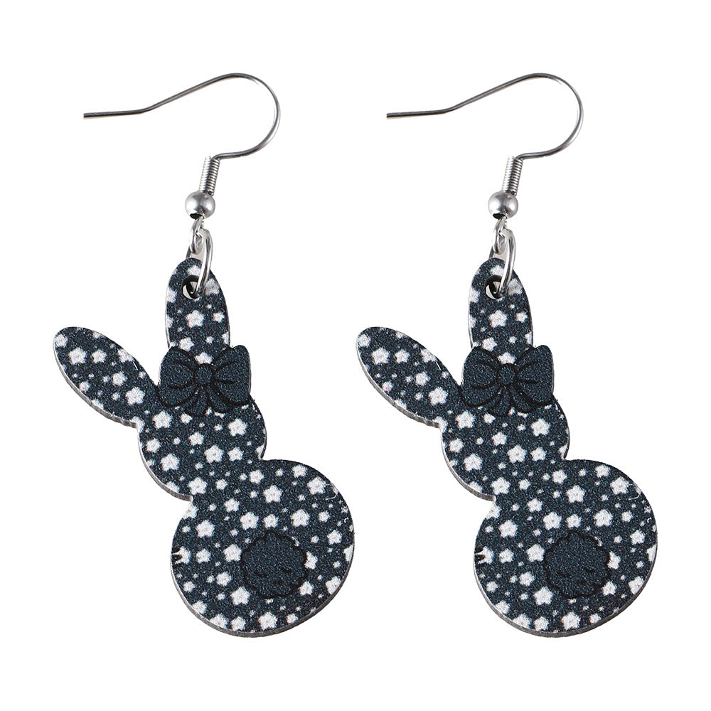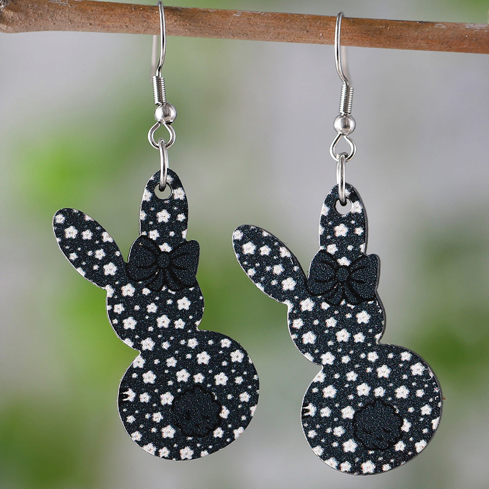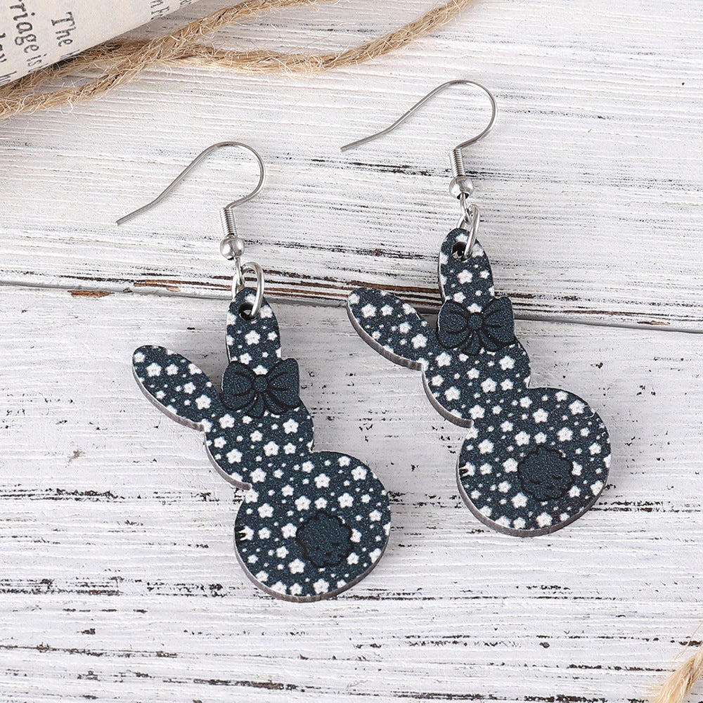 Wholesale Easter Cute Flower Bow Rainbow Rabbit Pendant Wooden Double-sided Earrings Gift