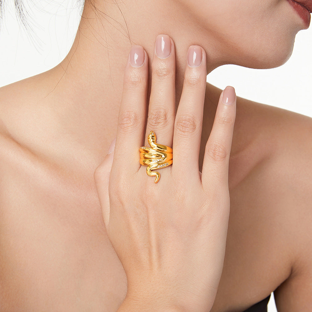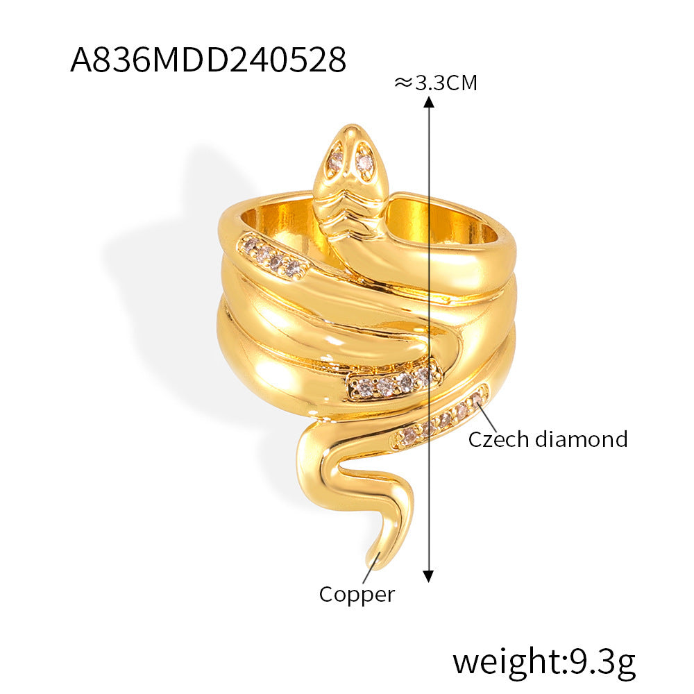 Wholesale Popular Copper Plated Real Gold Diamond Snake Ring for Couple Niche All-match Personalized Ins Opening Light Luxury Ring