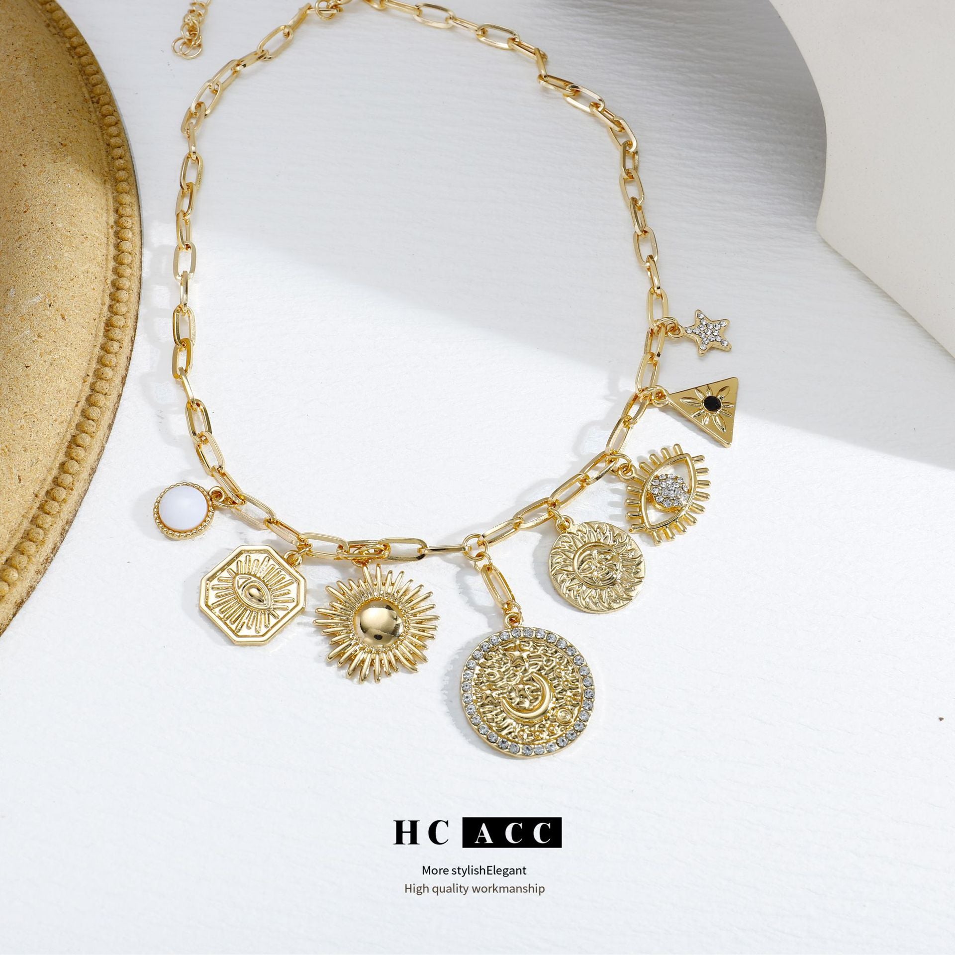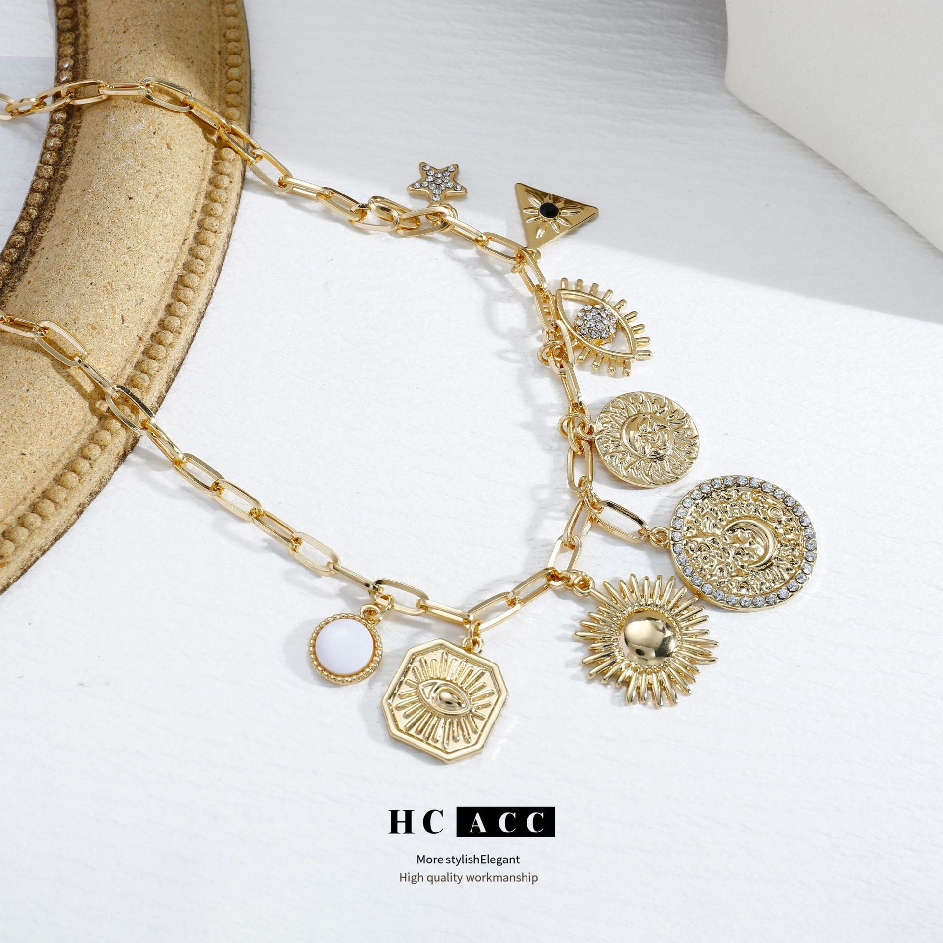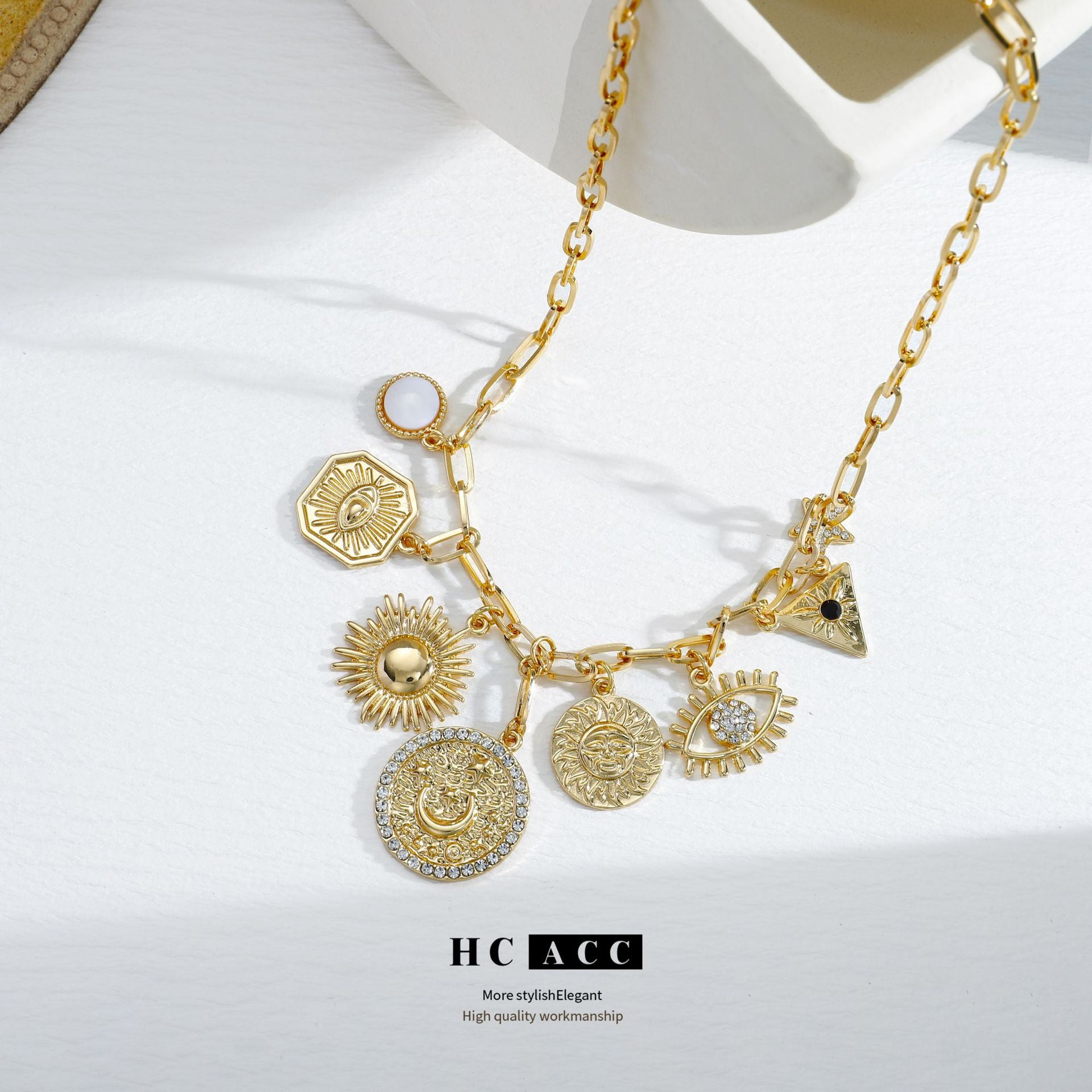 Wholesale Fashion Design Multi-element Demon Eye Moon Diamond Pendant Necklace