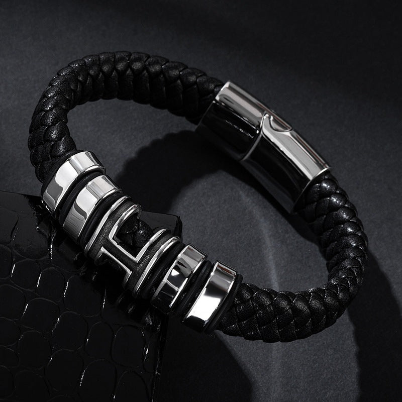 Wholesale Fashion Simple Hand Woven Leather Alloy Bracelet