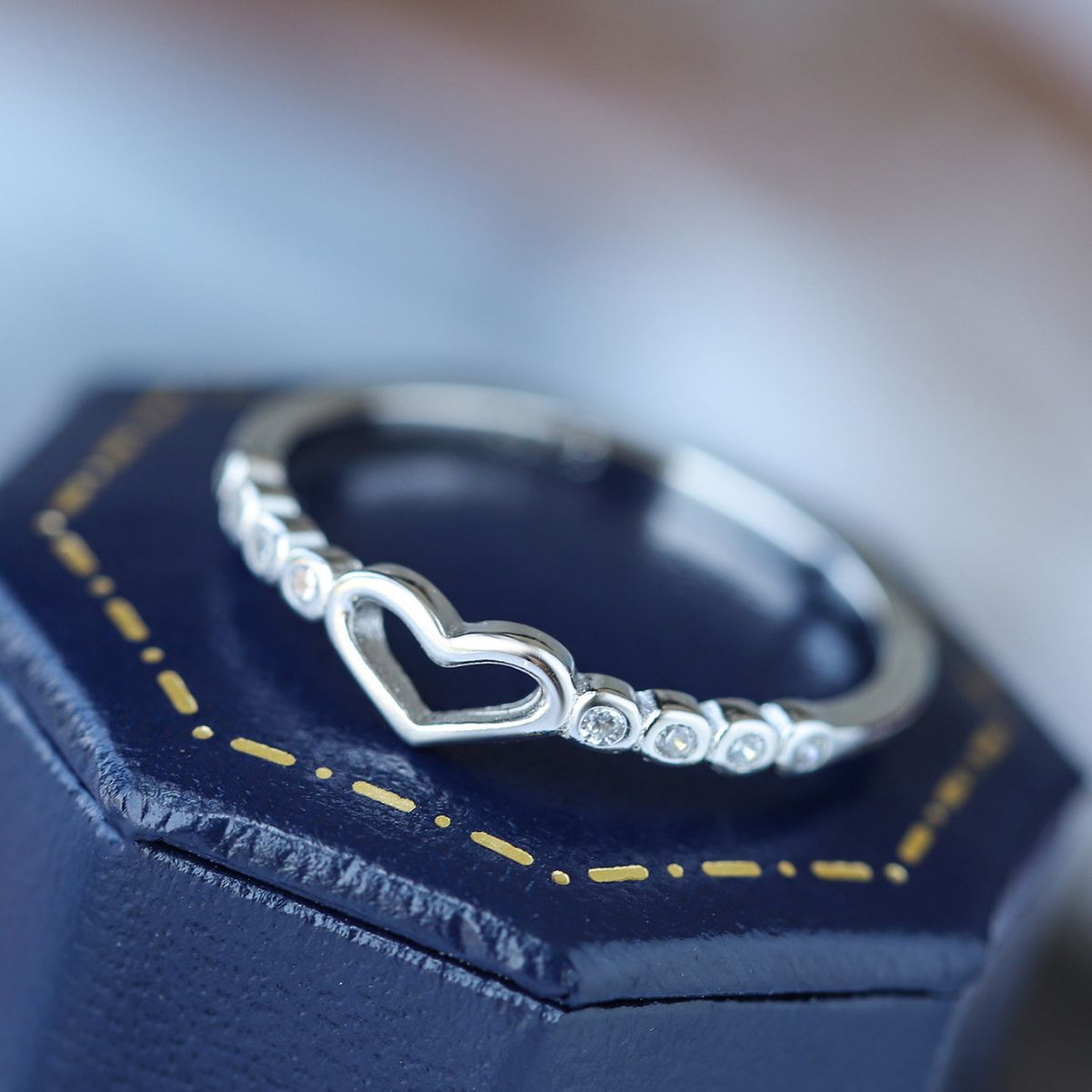 Wholesale Hollow Diamond Heart Shaped Sterling Silver Ring
