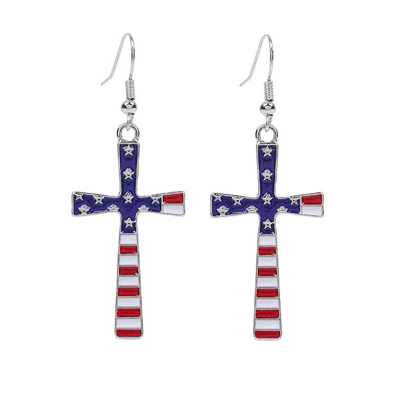 Wholesale Independence Day Cross Star Spangled Banner Earrings