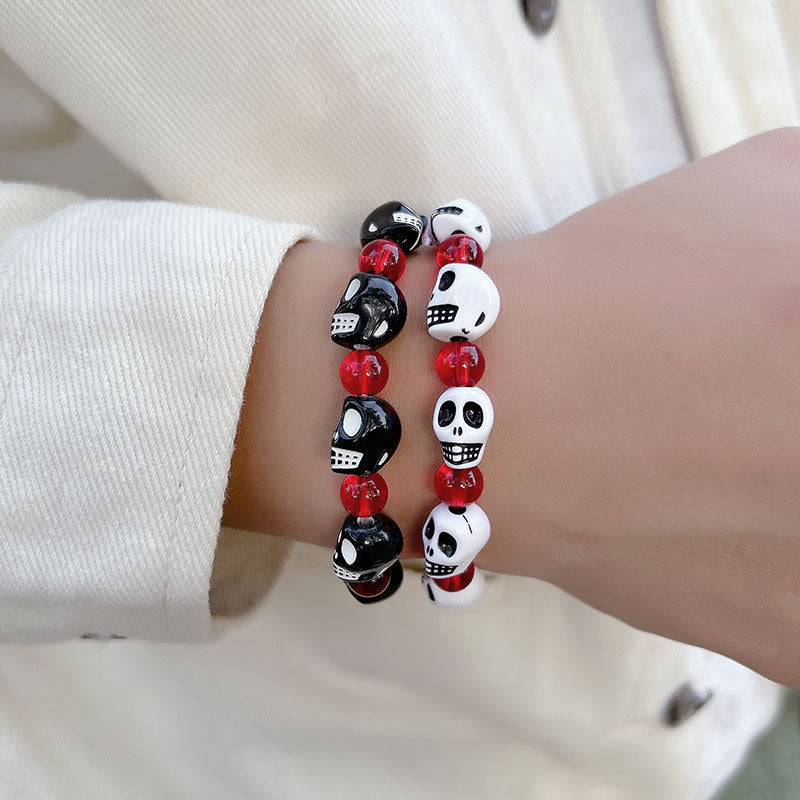 Wholesale Red Beaded Skeleton Head Acrylic Bracelet