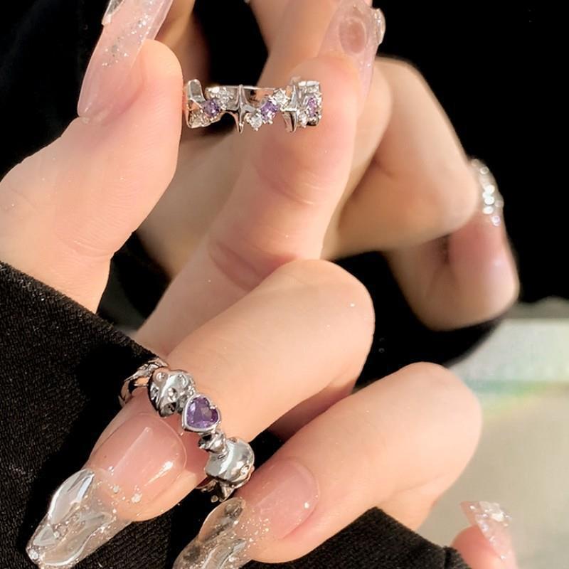 Wholesale Valentine's Day Purple Diamond Love Opening Alloy Ring