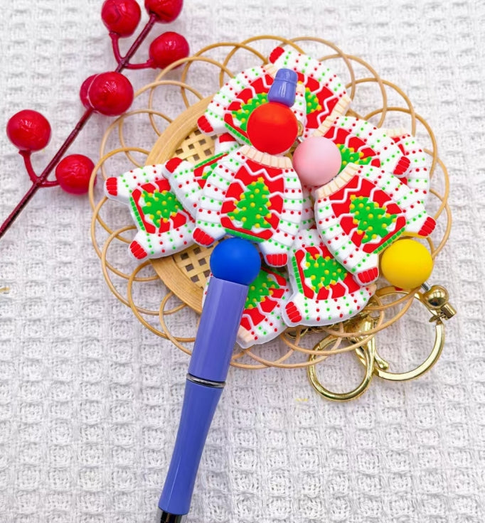 Wholesale 10pcs 2D Colorful Christmas Tree Silicone Beads DIY Beads