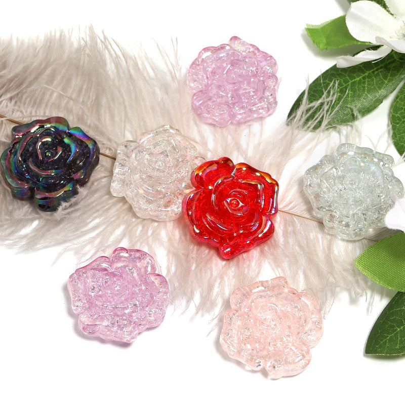 Wholesale 50pcs 30mm Transparent Color Crack Rose Beaded Acrylic Burst Camellia Beads