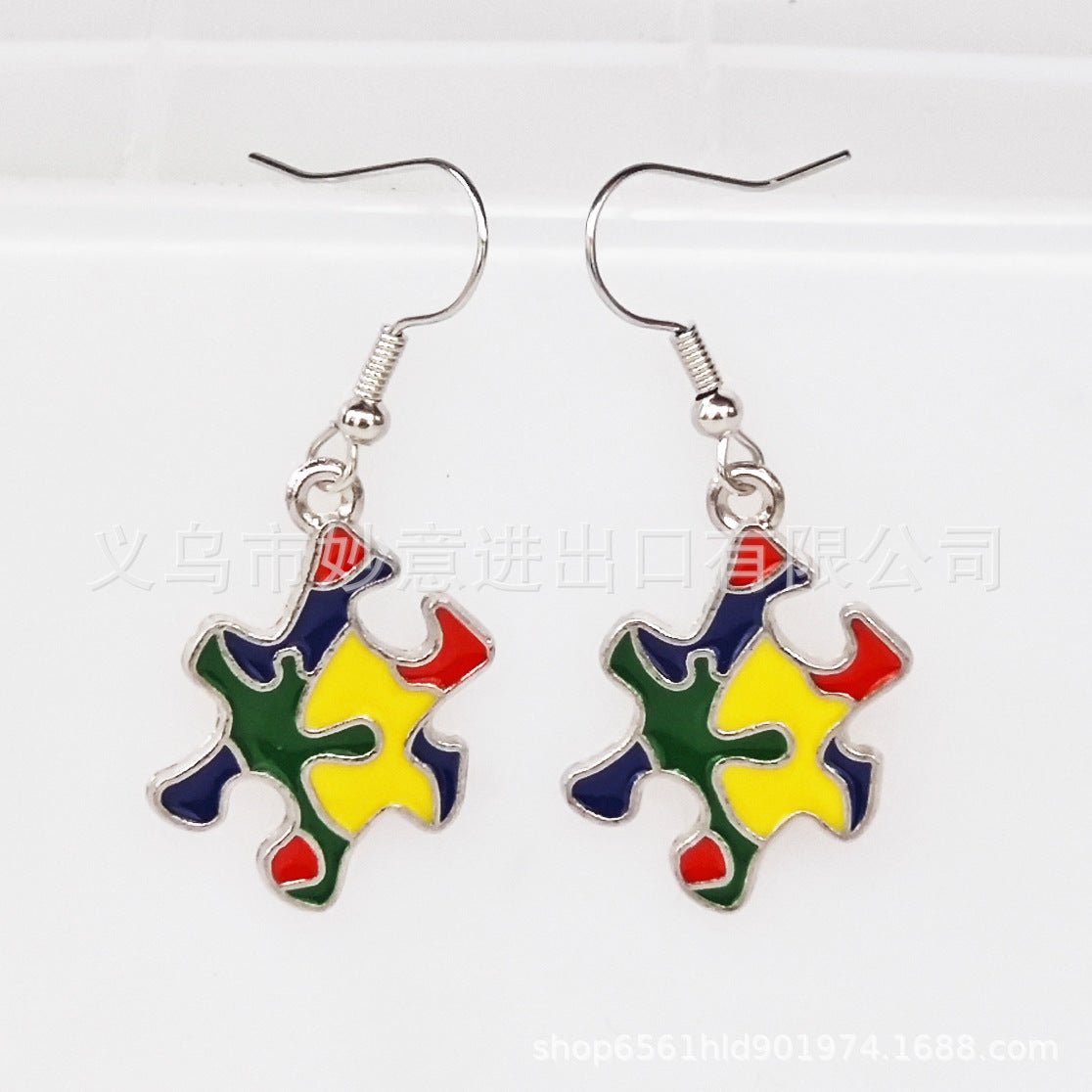 Wholesale 2PCS/Pack Color Puzzle Earrings Alloy Dropping Oil Puzzle Autism Ladies Earrings