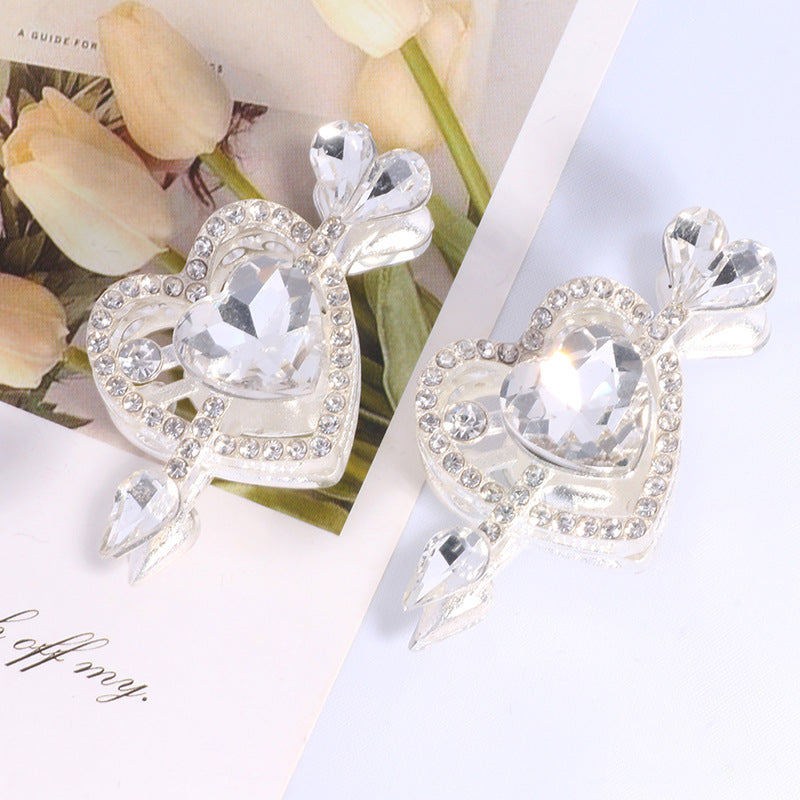 Wholesale 2PCS/Pack Double-sided alloy rhinestones one arrow through the heart love diamond ball straight hole beads DIY mobile phone chain keychain necklace accessories