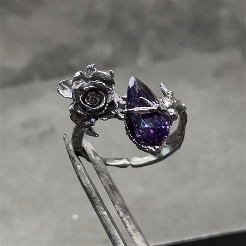 Wholesale INTJ Black Rose Impression Ring Art Handmade Index Finger Ring