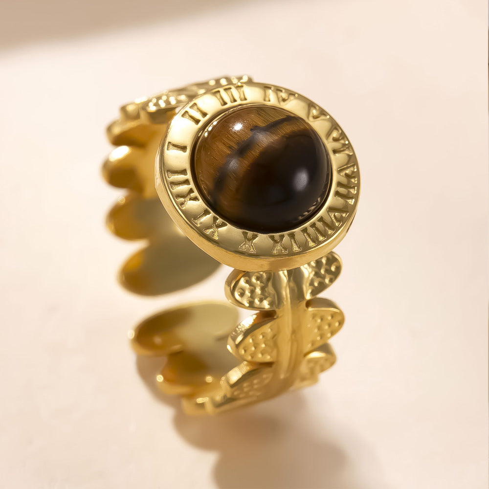 Wholesale Stainless Steel Gemstone Open Roman Numeral Ring