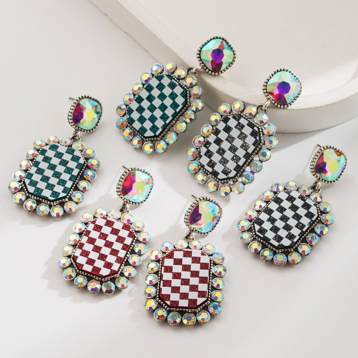Wholesale Women' s alloy square stud earrings with diamond lattice