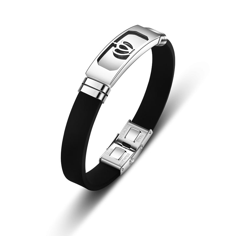 Pulsera de silicona de acero de titanio ahuecada para hombres al por mayor OLY-BT-BSLN001
