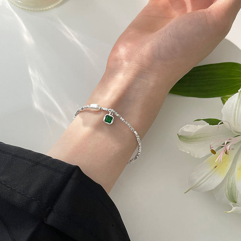 Pulsera de perlas con colgante de diamantes verdes de plata de ley 925 al por mayor