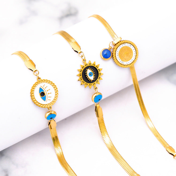 Wholesale Blue Eyes Bracelet Titanium Steel Flower Sun Sticky Diamond Portrait Round Bracelet