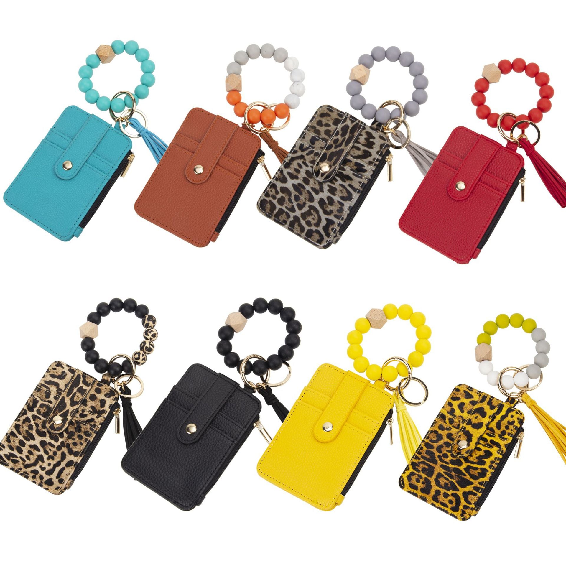 Wholesale Zero Wallet, Wooden Bead Card Bag, Silicone Wrist Keychain