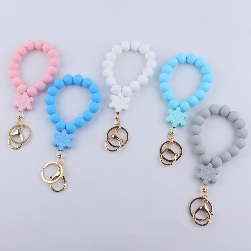 Wholesale Cartoon Silicone Snowflake Beads Wrist Keychain