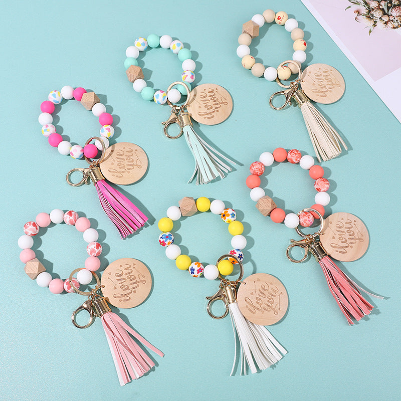 Llavero de muñeca con cuentas de silicona colorida al por mayor