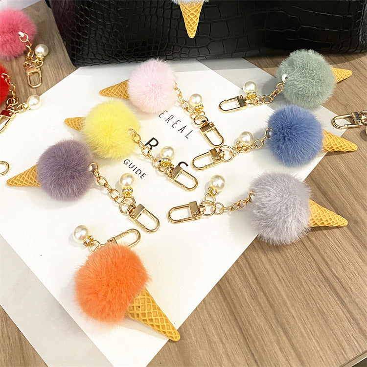Wholesale Pearl Ice Cream Keychain Plush Car Keychain
