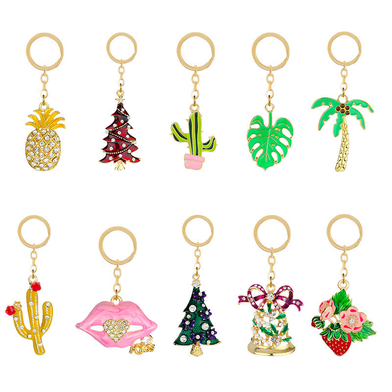 Llavero al por mayor de la aleación del cinc de la planta frutal de la fresa de la piña