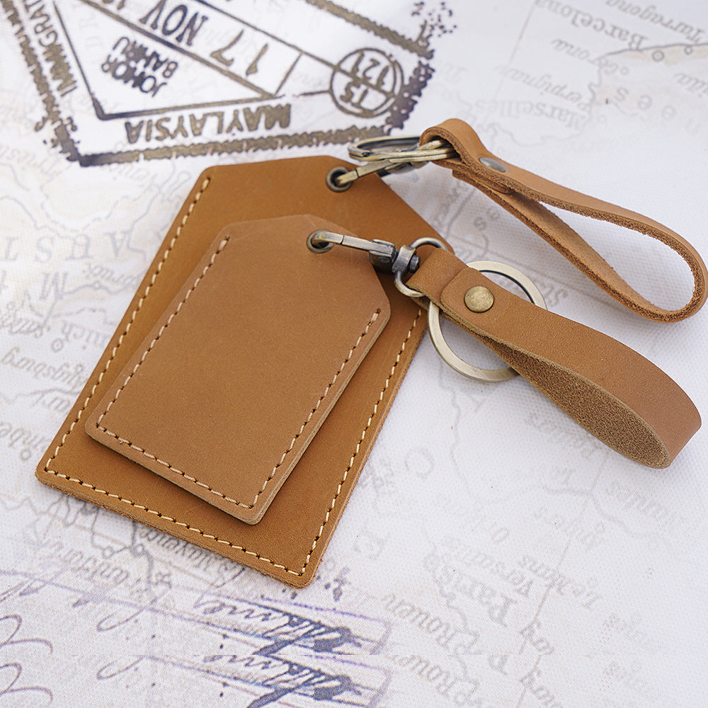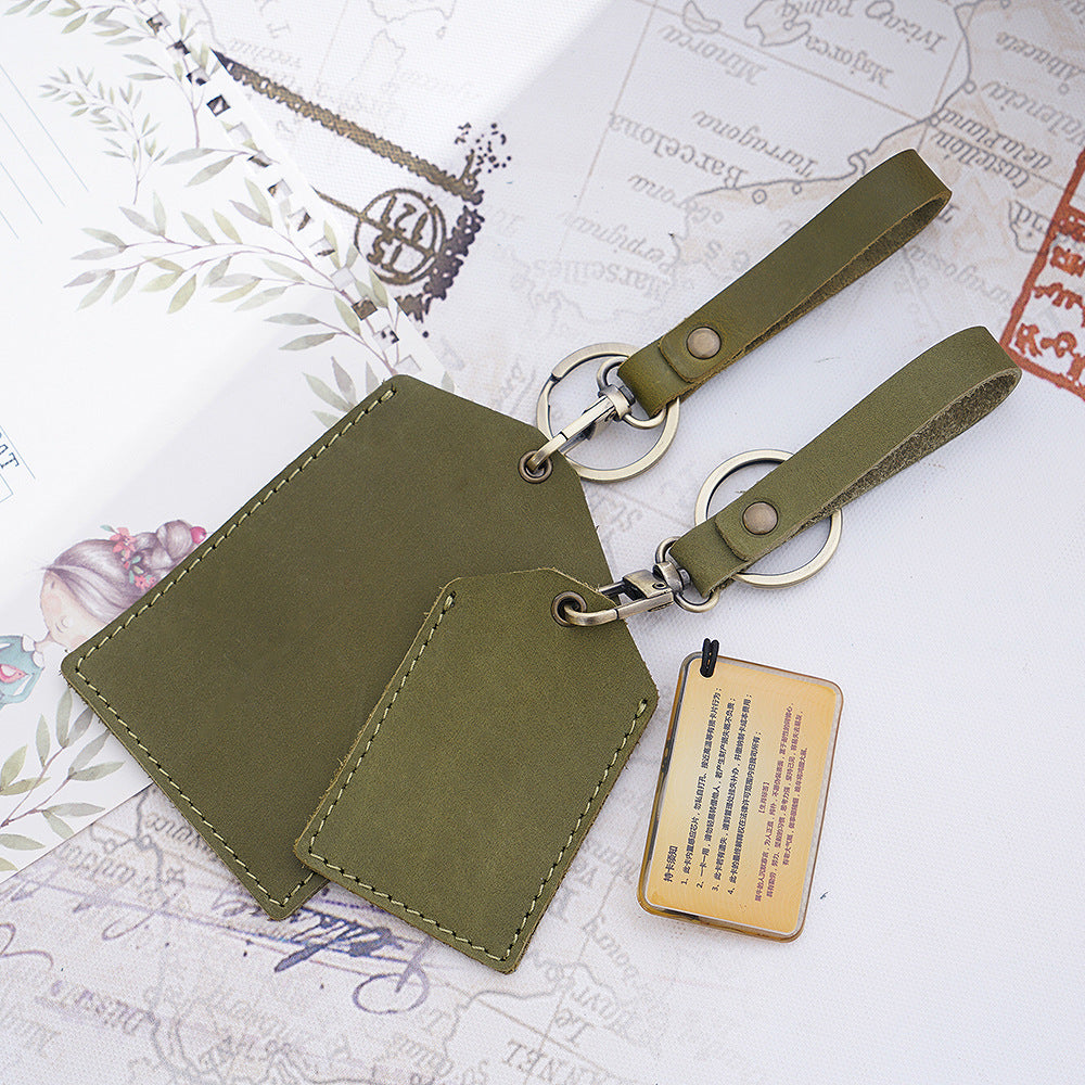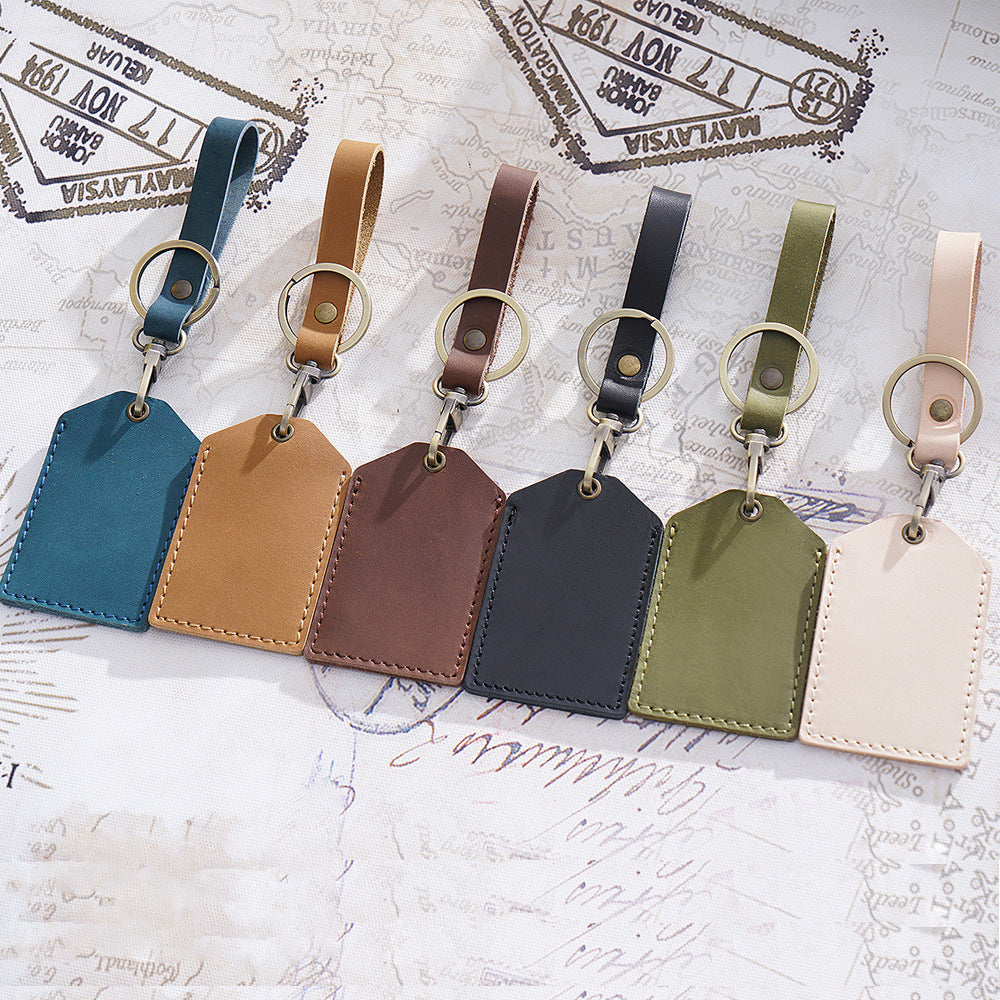 Wholesale Handmade Cowhide Mini Bus Card Holder Leather Keychain