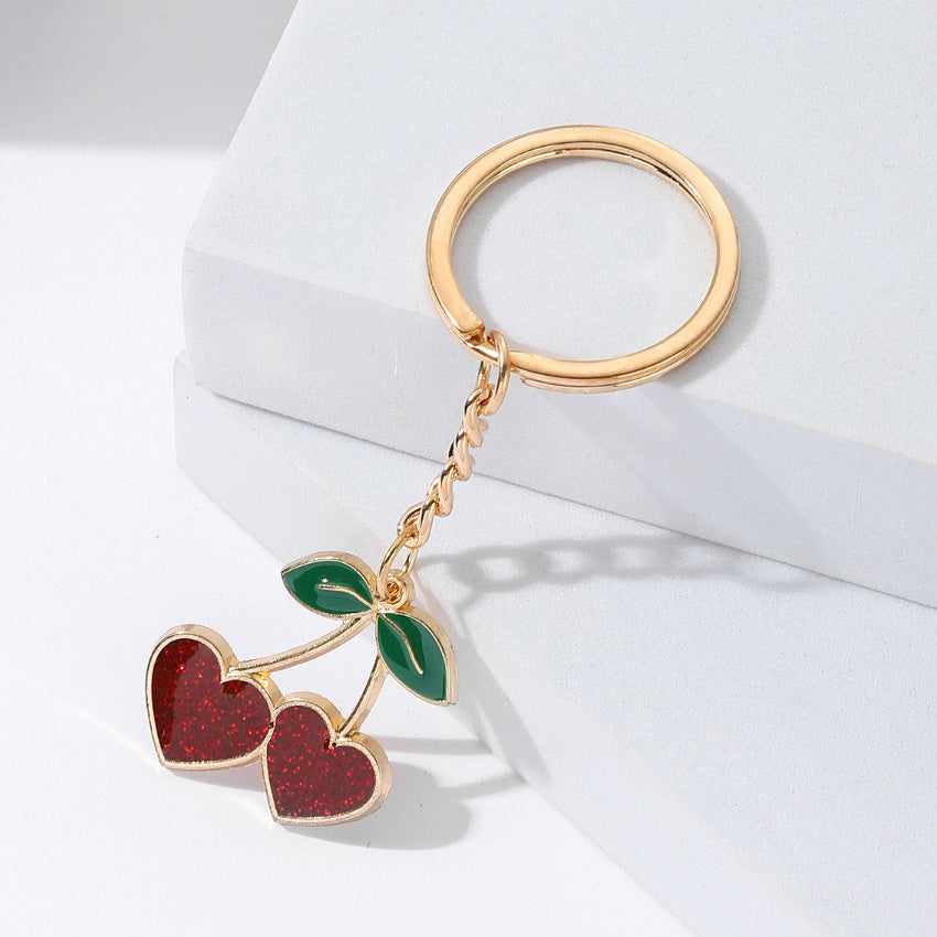 Precioso llavero de aleación de cereza y melocotón al por mayor