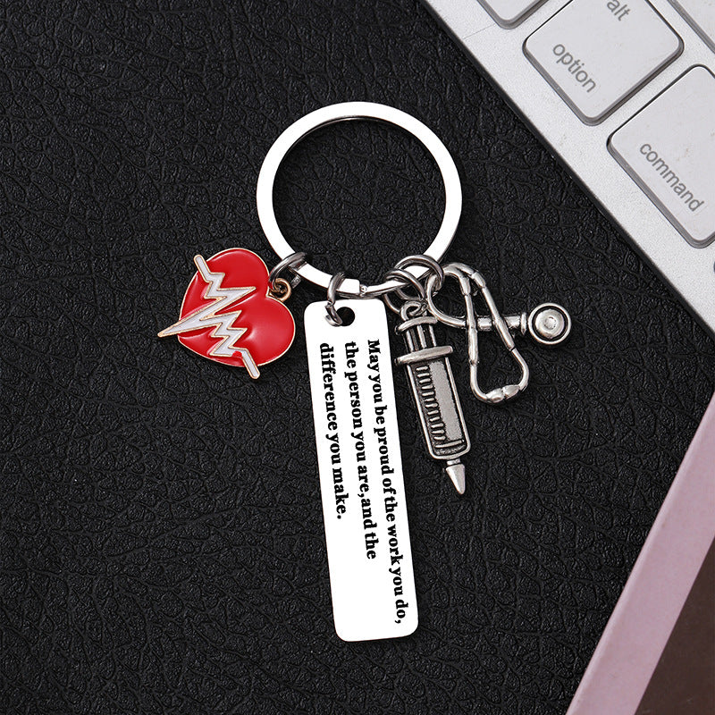 Wholesale Nurse Doctor Colleague ECG Thanksgiving Gift Stainless Steel Keychain