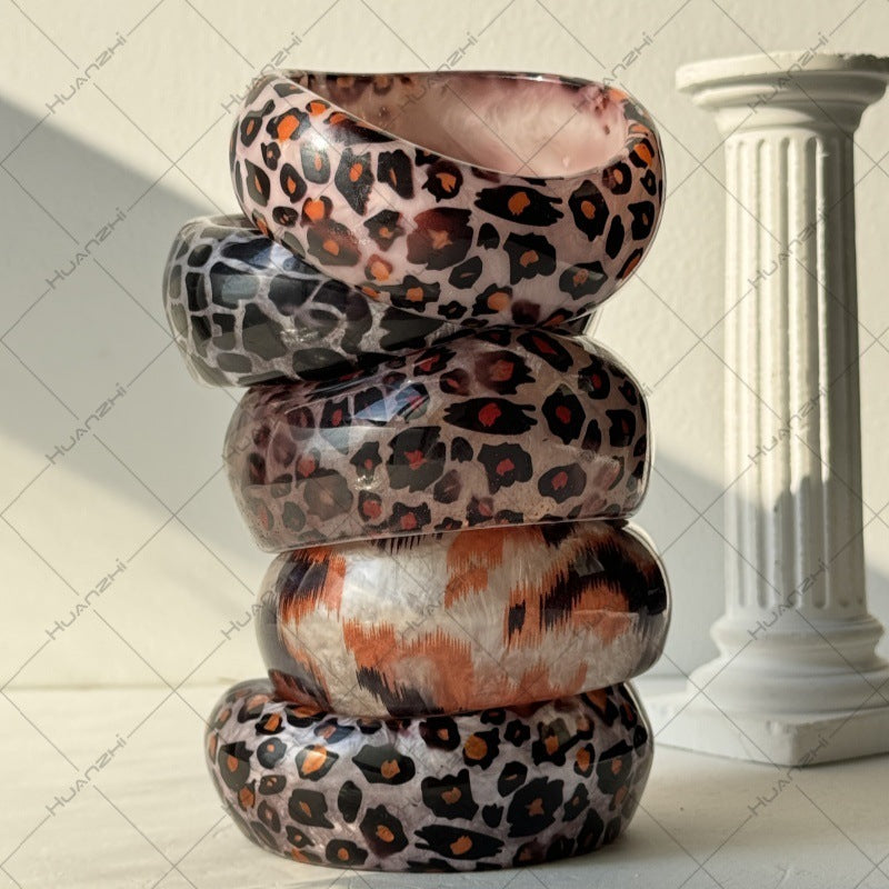Wholesale resin oval wide version geometric arc resin halo leopard bracelet