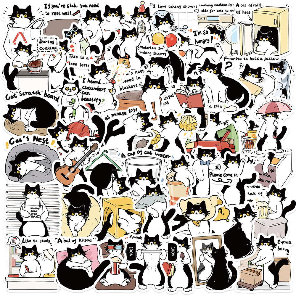 Wholesale 50pcs Cartoon Cute Cow Cat Waterproof Vinyl Stickers