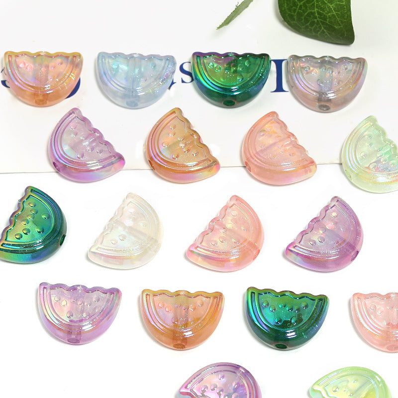 Wholesale 50pcs Night Light Acrylic Watermelon Transparent Color Fine Glitter Fruit Children DIY Beads