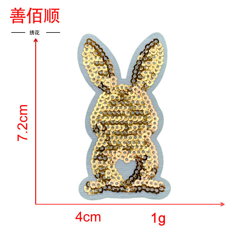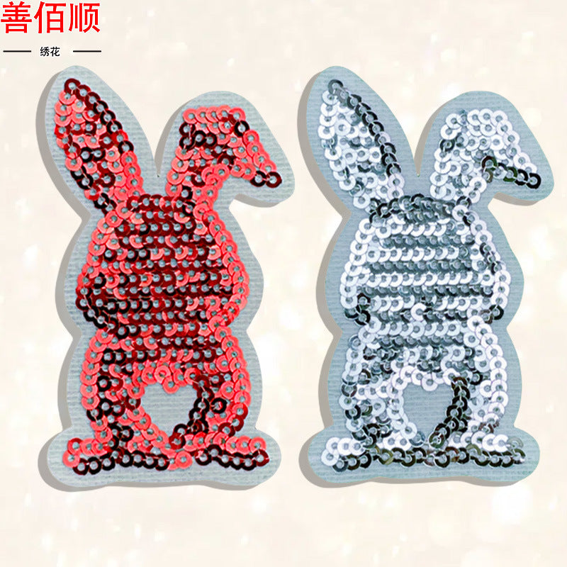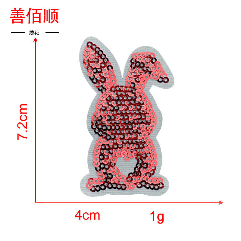 Wholesale 5pcs Embroidered Sequined Rabbit Cloth Patch Adhesive Clothing Accessories Fashion Cartoon Patch FS