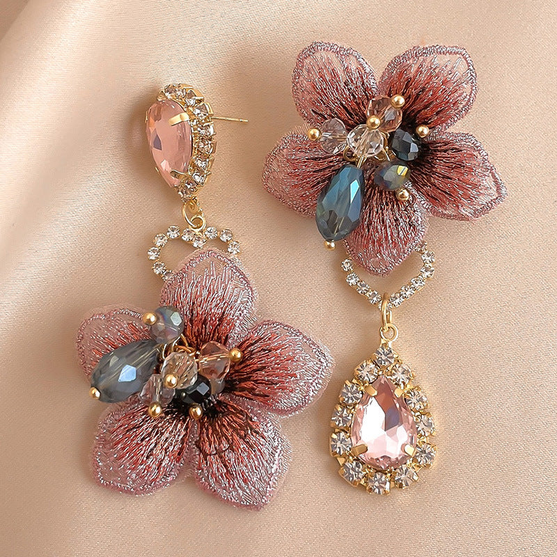 Wholesale 925 silver asymmetrical diamond fabric flower earrings