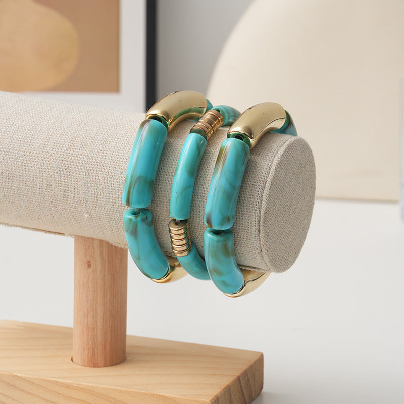 Wholesale Acrylic curved tube bracelet personalized bracelet curved bamboo tube multi-color retro marble bracelet