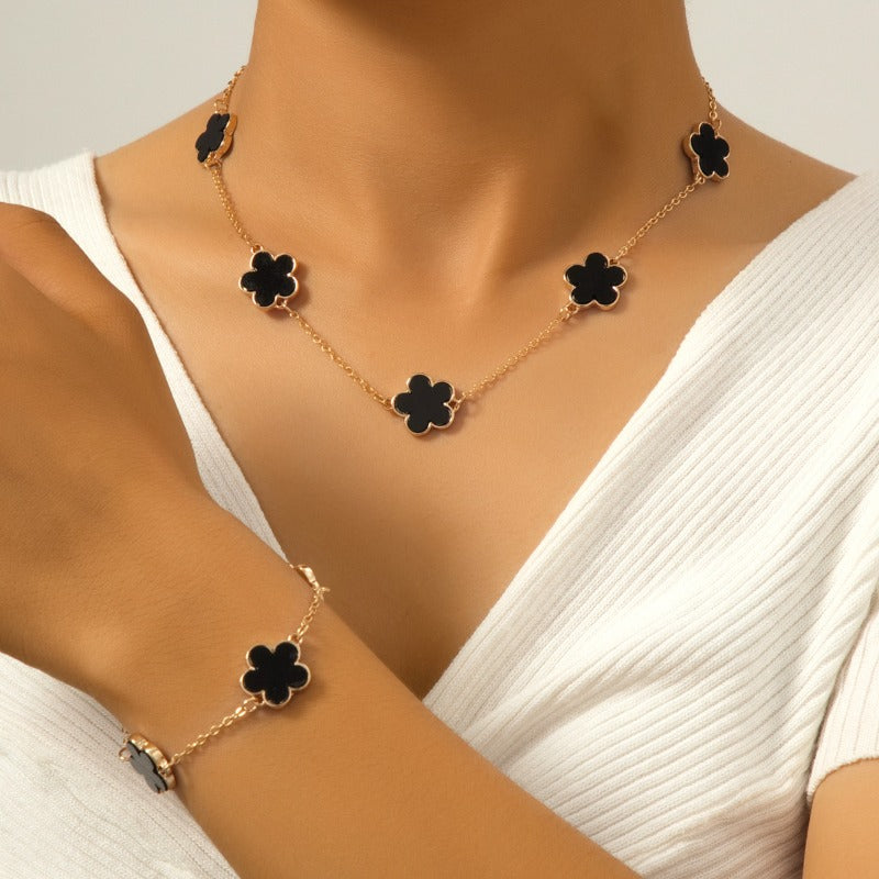 Wholesale Alloy Delicate Black Imitation Mother-of-Pearl Flower Bracelet Necklace