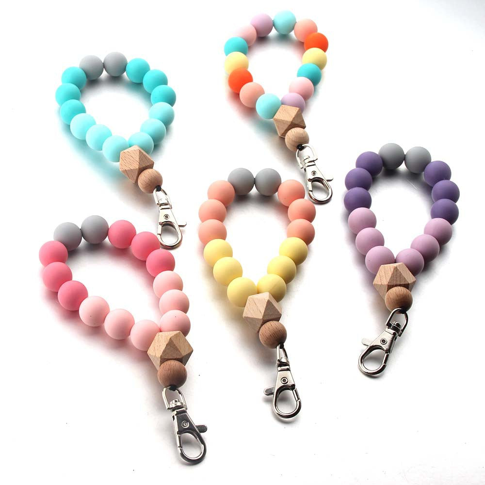 Wholesale Keychain Beech Wood Beads Metal Silicone Bracelet Key Ring