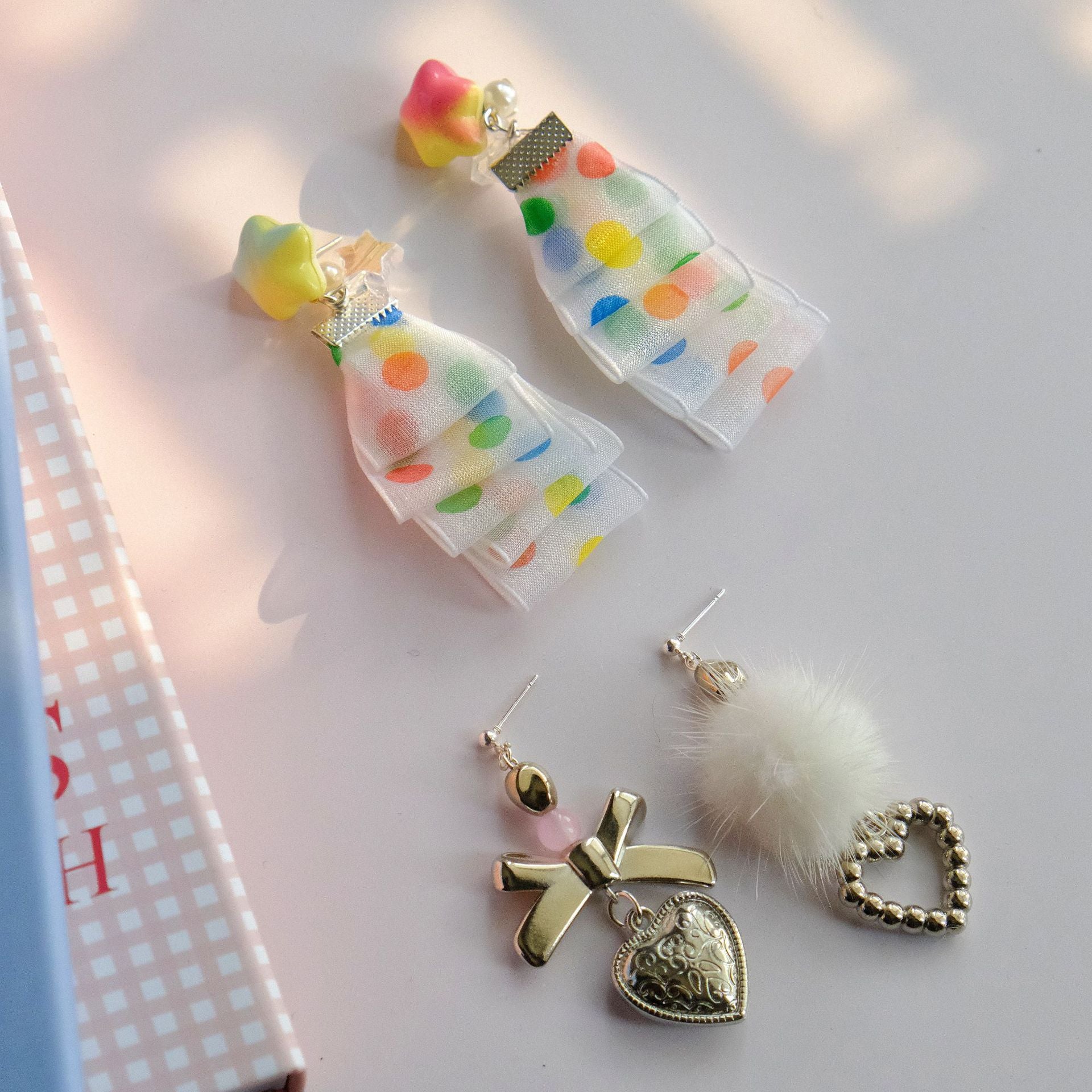 Wholesale Arrival Hand-made Color Wave Dot Ribbon Asymmetric Love Plush Autumn and Winter Earrings