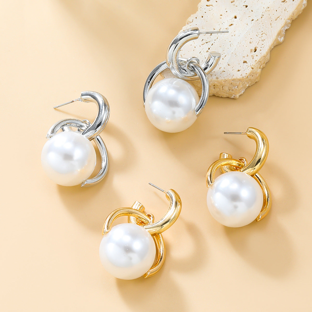 Wholesale Autumn and winter earrings spherical imitation pearl earrings girl heart alloy retro earrings jewelry