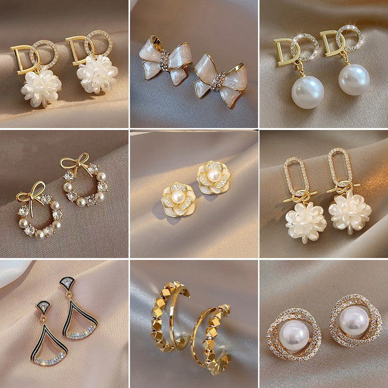Wholesale Autumn and Winter High-end Bow Pearl Personality Fashion Temperament Pendant Earrings