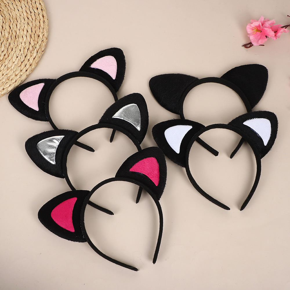 Wholesale Black cat ears short plush headband