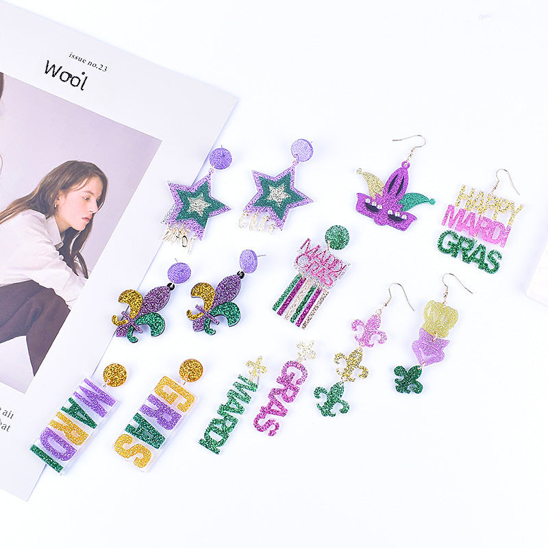 Wholesale Carnival earrings purple green yellow five-pointed star Crown Clown mask lobster earrings