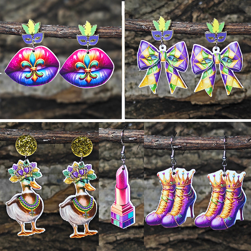 Wholesale Carnival Mask Crown Duck Boots Lipstick Atmosphere Earrings