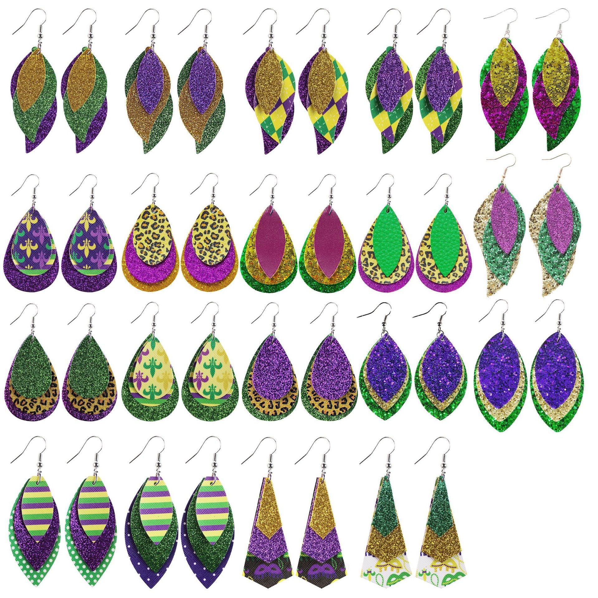 Wholesale Carnival Three-layer Leather Printed Powder Water Drop Leaves
