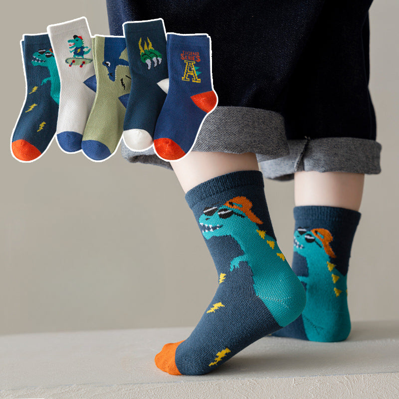Wholesale Children's Autumn and Winter Mid-tube Cartoon Dinosaur Combed Cotton Trendy Socks