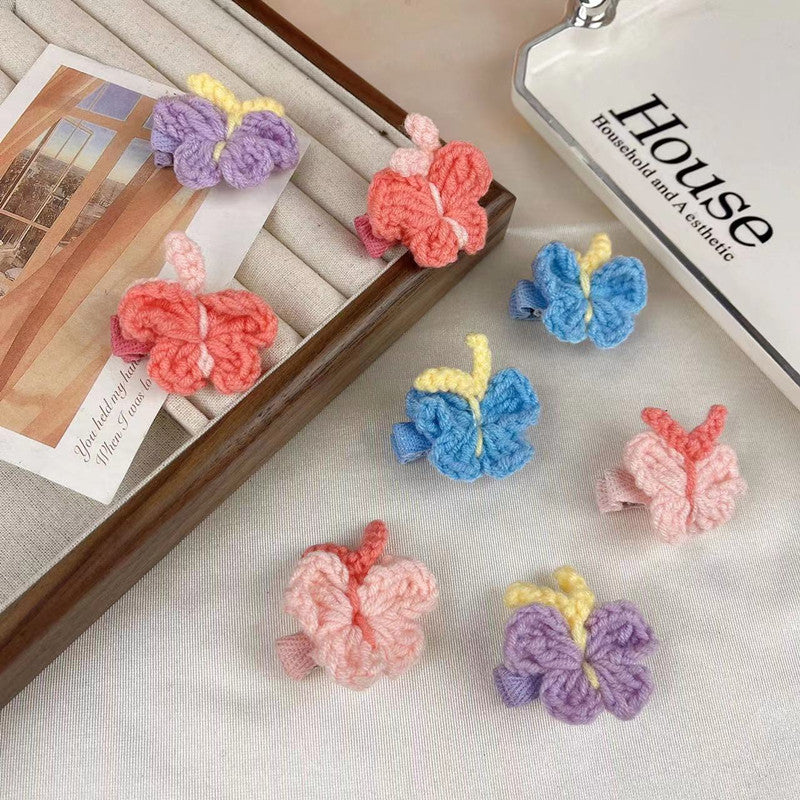 Wholesale Children's Wool Butterfly Sweet Girl Side Clip Bangs Knitted Hair Accessories for Women