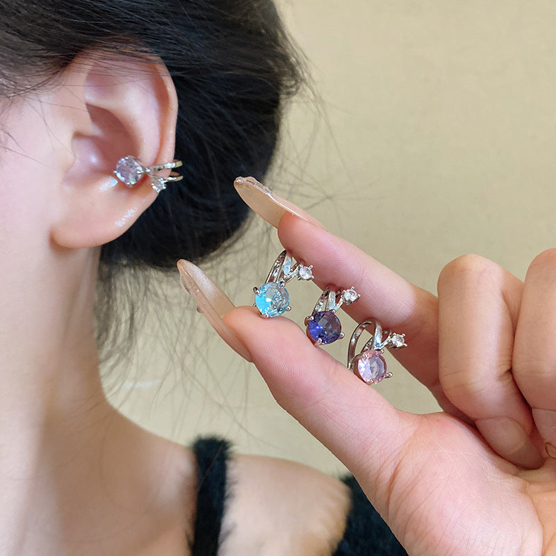 Wholesale colorful zircon rabbit red no ear hole ear bone clip earrings
