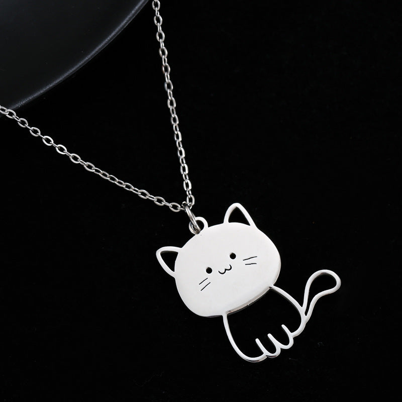 Wholesale Creative Fashion Big Head Cat Stainless Steel Titanium Steel No Fading Necklaces