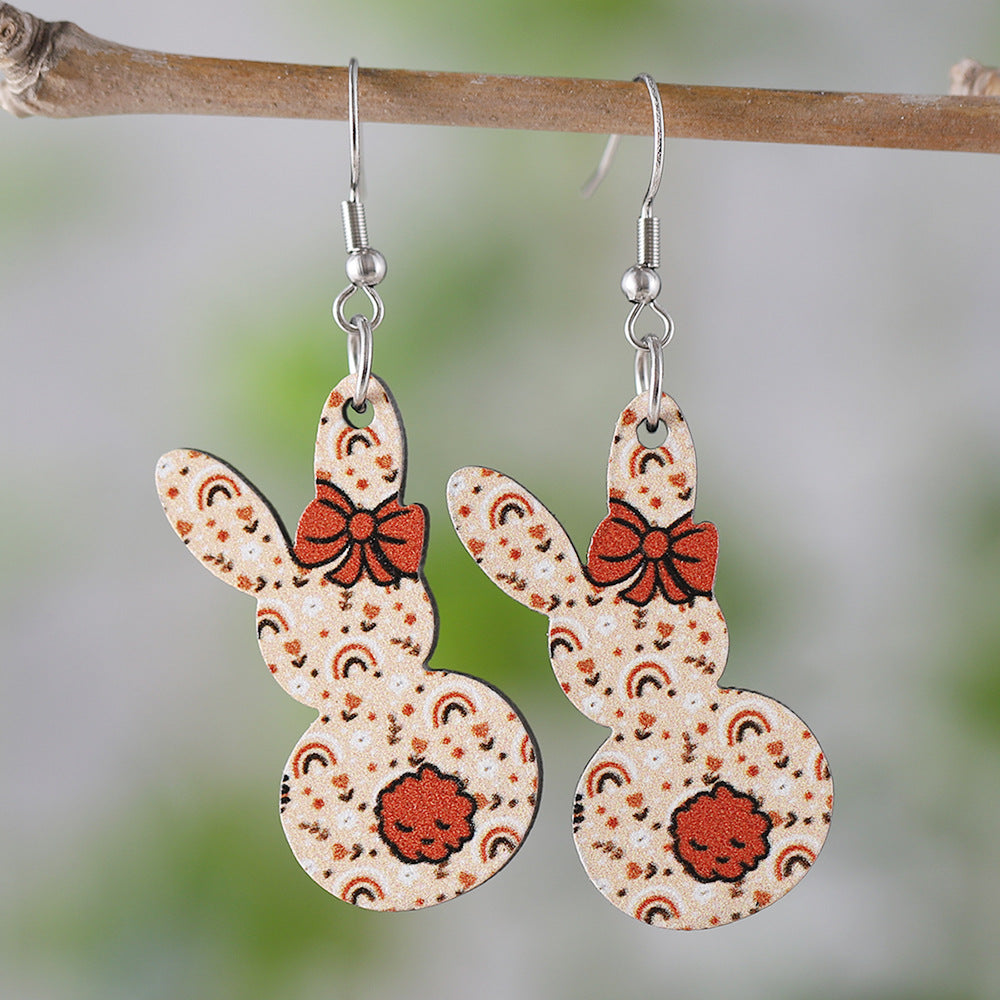 Wholesale Easter Cute Flower Bow Rainbow Rabbit Pendant Wooden Double-sided Earrings Gift
