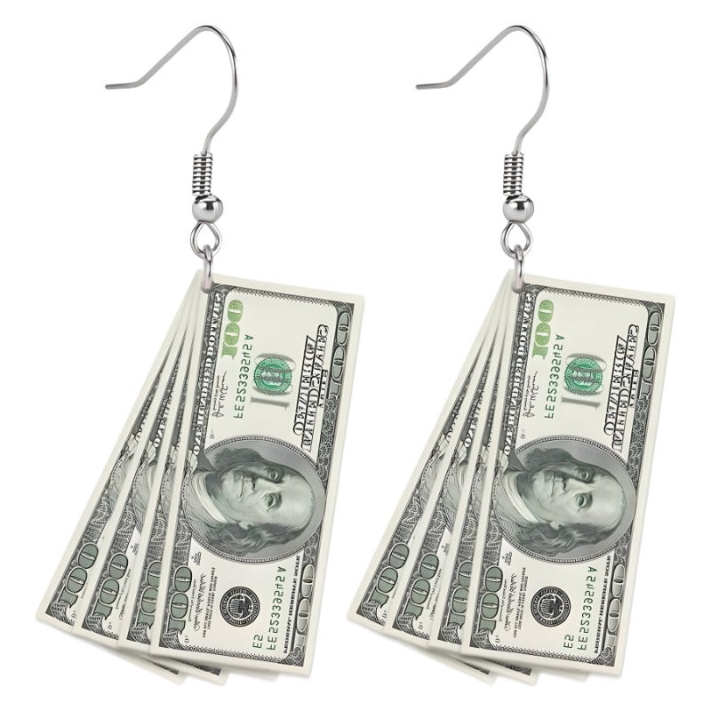 Wholesale Flat 2D Dollar Acrylic Fashion Creative Holiday Gift Earrings
