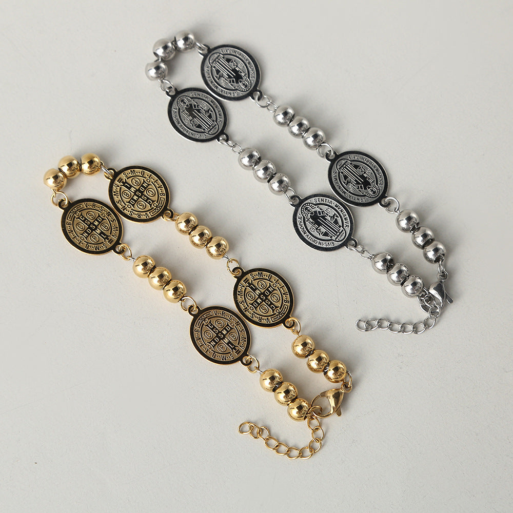 Wholesale gold and silver stainless steel exquisite bracelet jewelry fashion retro style relief figure titanium steel high-grade bracelet