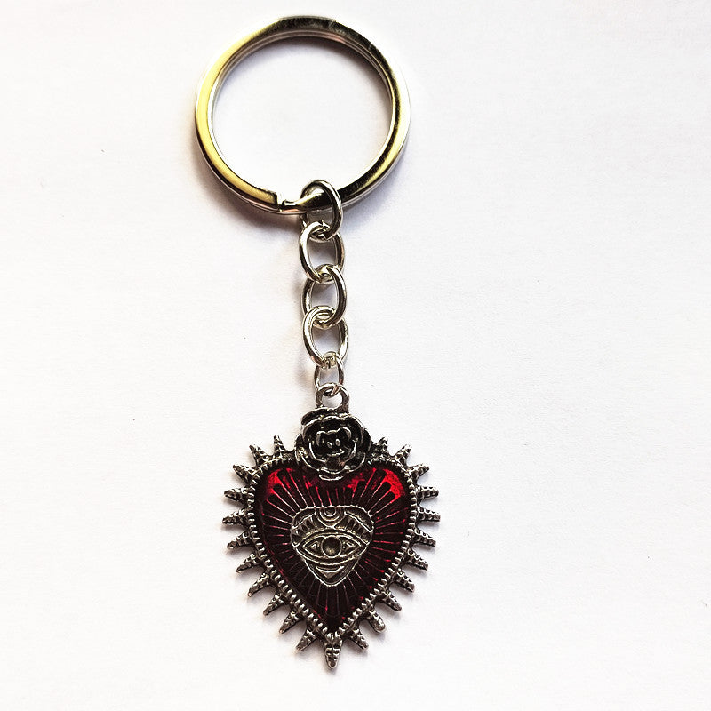 Wholesale Gothic Punk Style Demon Eye Black Rose Heart Keychain
