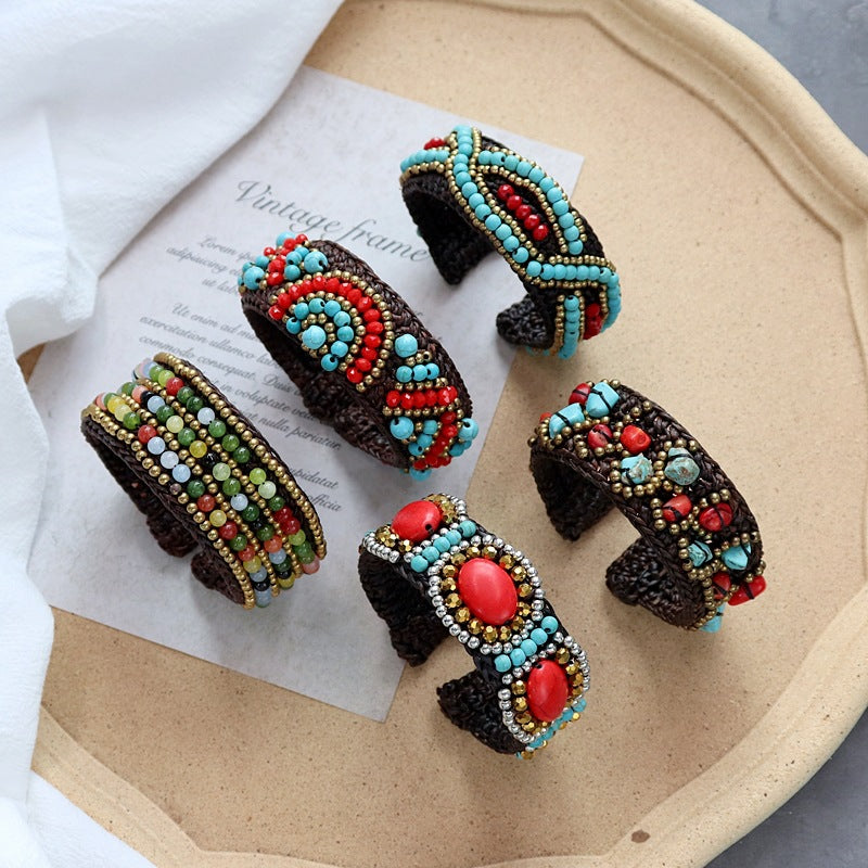 Wholesale handmade Bohemian ethnic woven natural stone bracelet